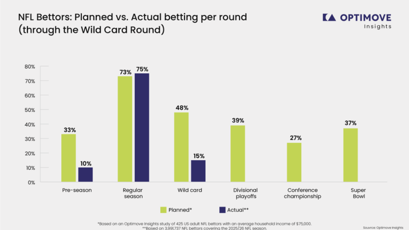 Optimove Insight Analysis of NFL 2025-2026 Planned v. Actual NFL Wagering Intentions Through the Wild Card Round